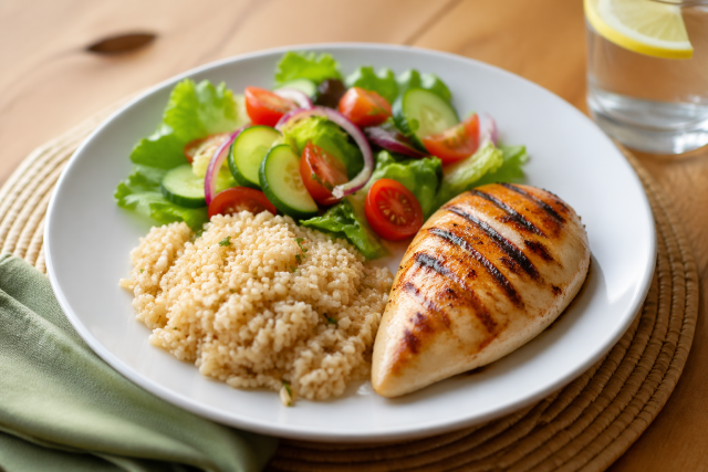 Një nga zgjedhjet më të mira për drekë është kombinimi i proteinave, karbohidrateve të shëndetshme dhe perimeve të freskëta. Për shembull, mishi i pulës i pjekur në skarë, i shoqëruar me oriz integral dhe sallatë të gjelbër, është një vakt i plotë dhe i lehtë për tretje.